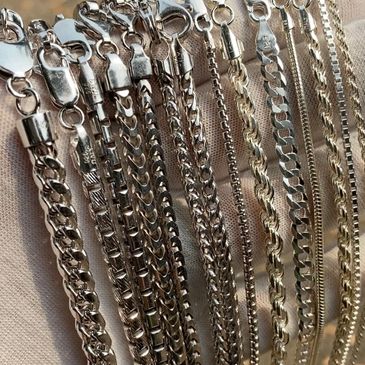 We offer a wide range of silver necklaces in just about every style and length imaginable, along with Cuban and Byzantine link bracelets